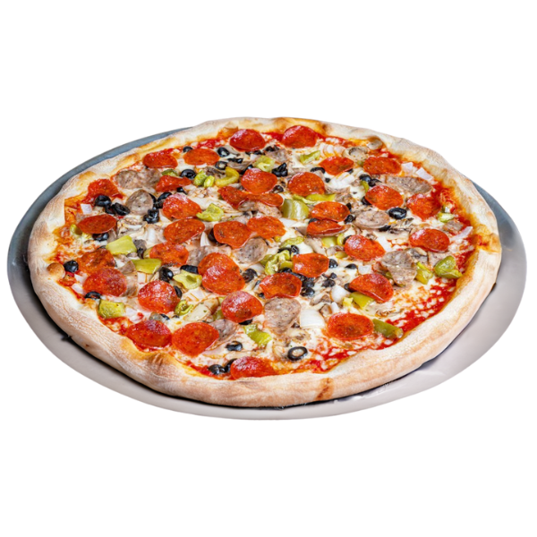 Pepperoni, sausage, mushrooms, extra cheese, green peppers,